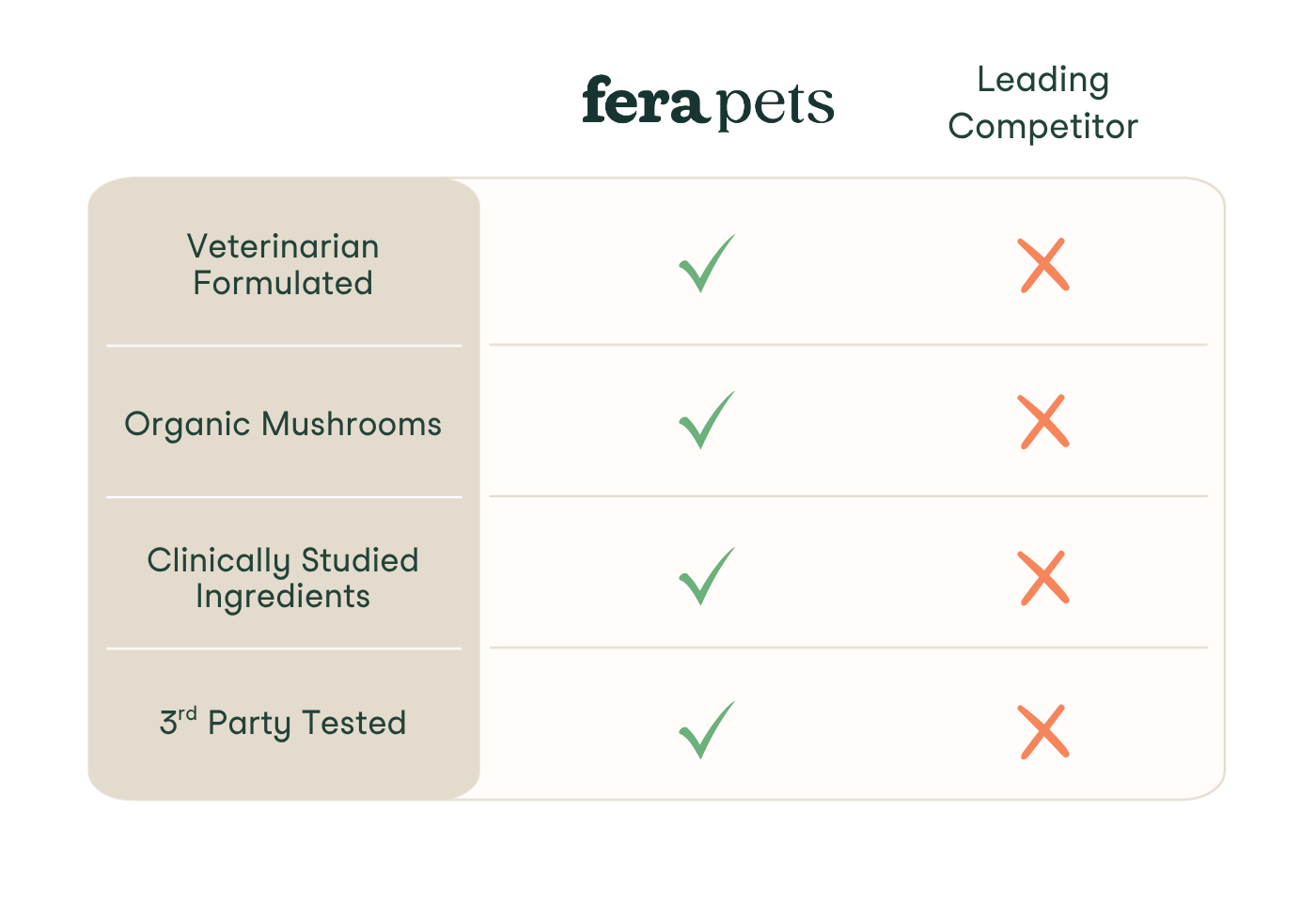 “As a veterinarian and acupuncturist, I searched high and low for effective supplements for my patients but was shocked when I couldn’t find all of the qualities that I demanded. When I realized big corporations were producing less than mediocre formulas, I knew I had to make a change in this industry.High-quality ingredients, correct inputs, a combination of Eastern and Western philosophies — was that too much to ask for? I decided it wasn’t, which is why I created Fera Pets. Join us as we set the new standard for pet supplements.”